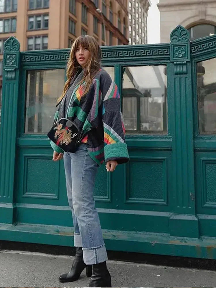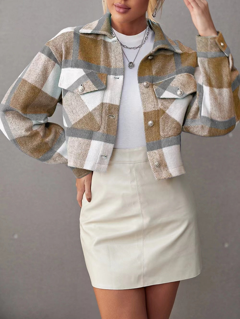 Trendy kostkovaná dámská bunda pro elegantní vzhled