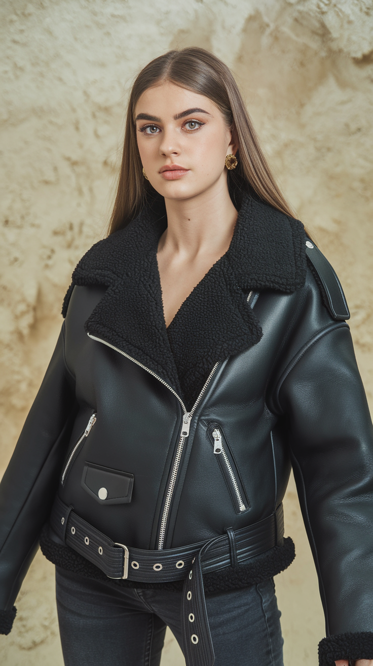 Dina - Kožená sherpa bunda s příjemnou fleecovou podšívkou a trendy vintage stylem pro ženy