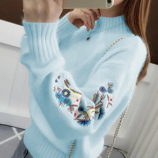 Mila - Elegantní pletený svetr s krásnou květinovou výšivkou
